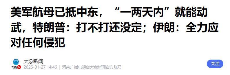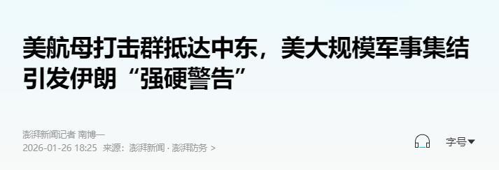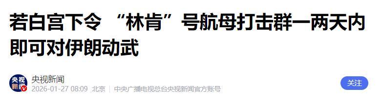 现在的波斯湾局势空前的紧张,若能凑近美军中央司令部的战术大屏,便会发现“演习”的伪装早已被撕碎,1月25日,代表“林肯”号航母打击群的刺眼红色光标,毫无遮掩地切入中东腹地,打破了此前的隐蔽机动状态。